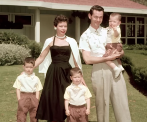 Johnny Carson and wife Jody Wolcott with their sons Chris, Rick and Cory at their home in Encino, California, circa 1955.Archive Photos/Getty
